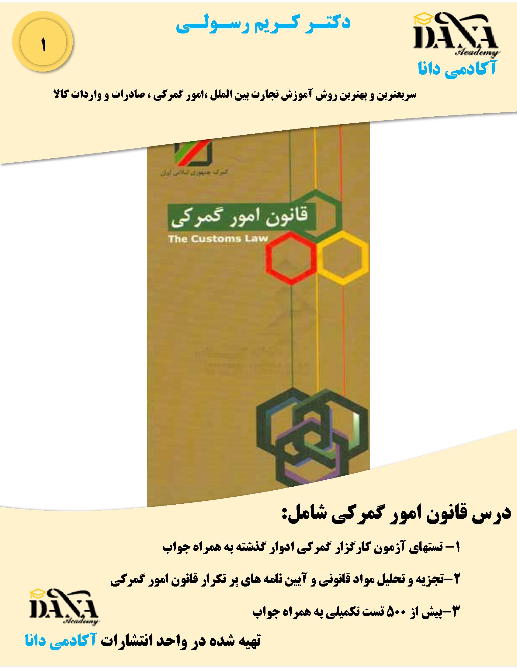 این مجصول شامل تست های آزمون امو گمرکی ادوار گذشته و همچنین تجریه و تحلیل تستهای پر تکرار ادوار و بیش از ۵۰۰ تست تکمیلی از درس قانون امور گمرکی همراه با جواب می باشد