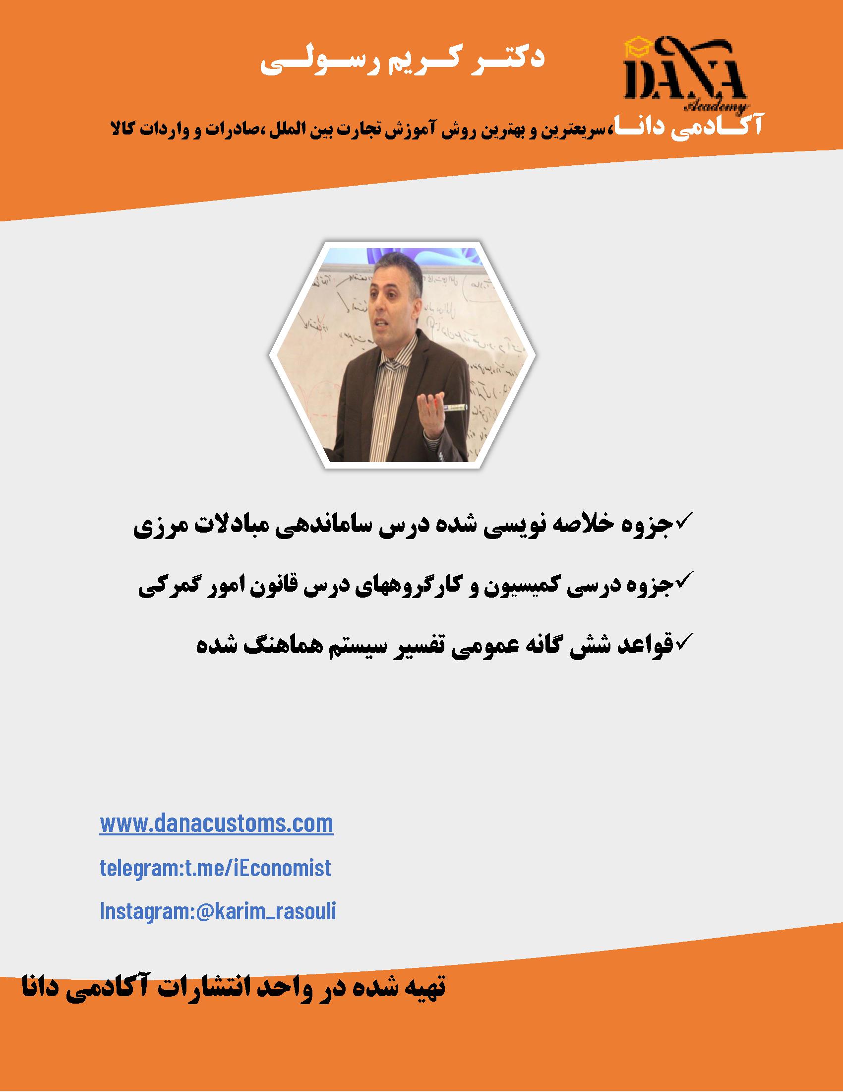 مجموعه دروس ساماندهی مبادلات مرزی-کمسیونها و کارگروههادرس قانون امور گمرکی وقواعد ششگانه عمومی تفسیر سیستم هماهنگ شده